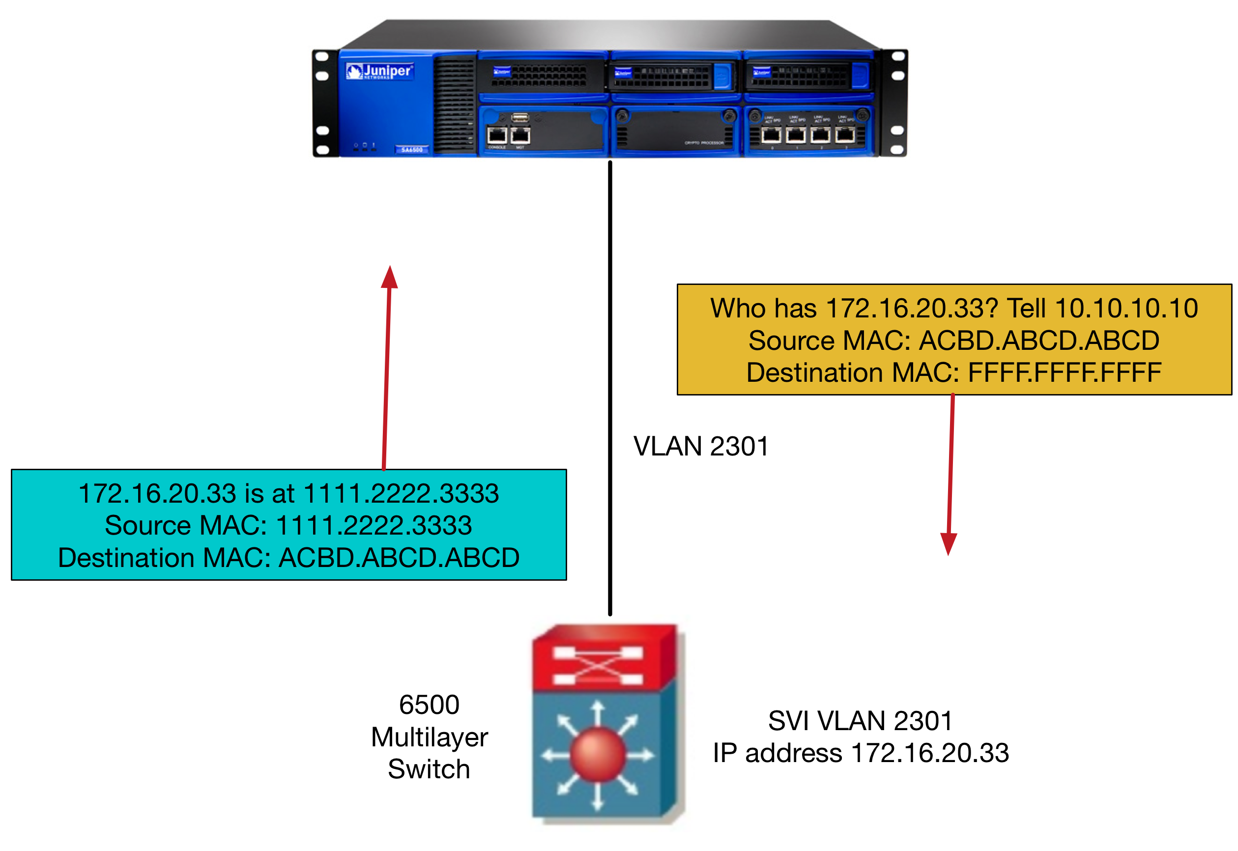 It turns out that 6500s and Nexus switches respond to ARP requests in different ways. The process on the 6500 is fairly standard and works as follows: