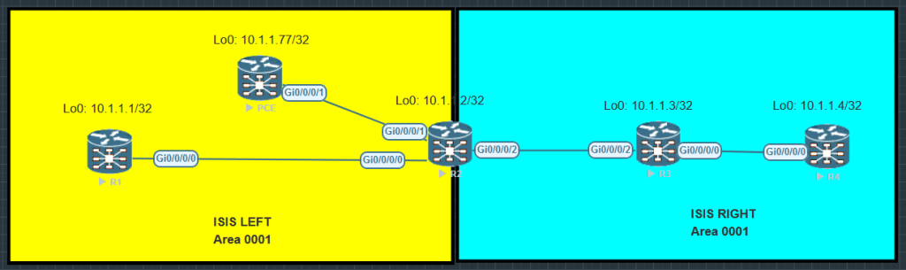 R2 is the ABR and is taking the ISIS link state information and advertising it via BGP-LS to the PCE.